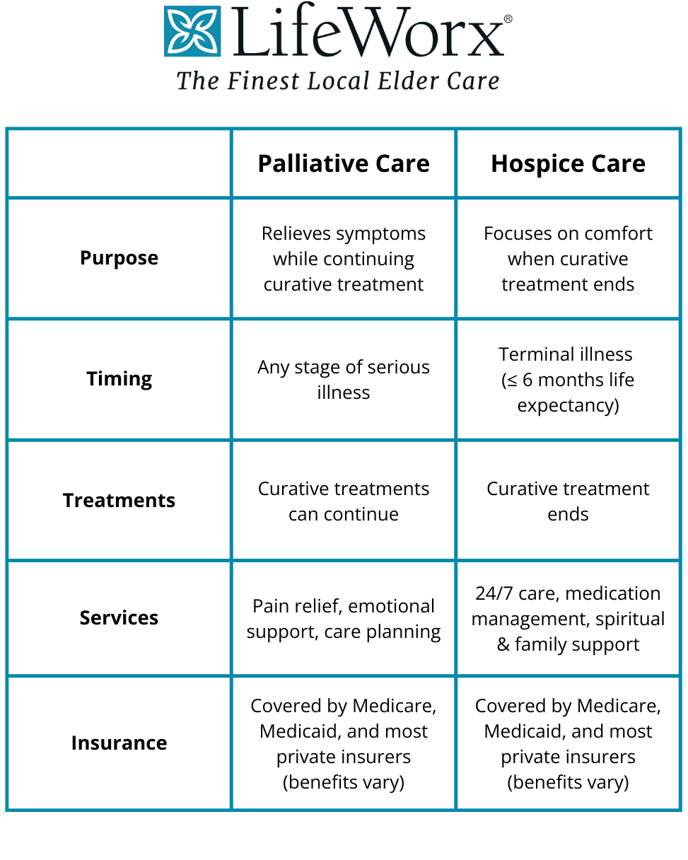 - When it’s for: At any stage of a serious illness, from diagnosis onward, even when a cure is still being actively pursued. Starting palliative care early has been shown to improve quality of life and can even help patients live longer.